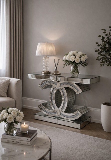 Gi ditt hjem en touch av luksus med vårt vakre Konsollbord l. Dette elegante bordet vil være et blinkfang i ethvert rom, og vil skape en fantastisk atmosfære med sitt myke og behagelige lys. Enkelt å bruke med en vanlig stikkontakt i nærheten, og med muligheten til å slå av lyset når du ønsker det.