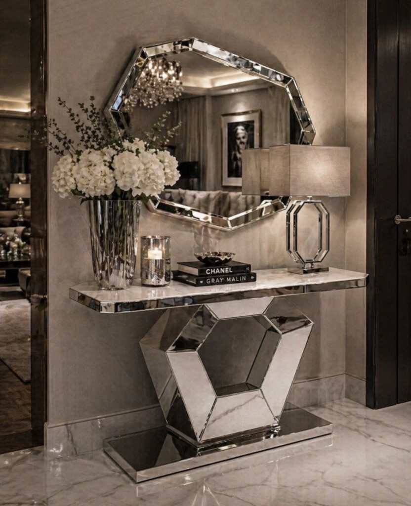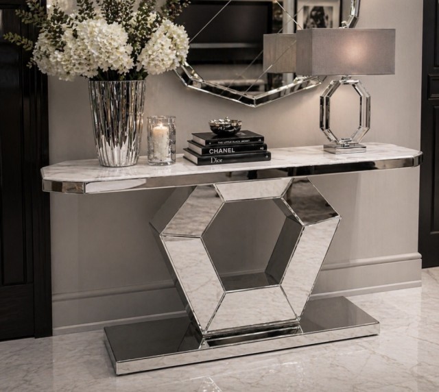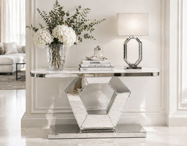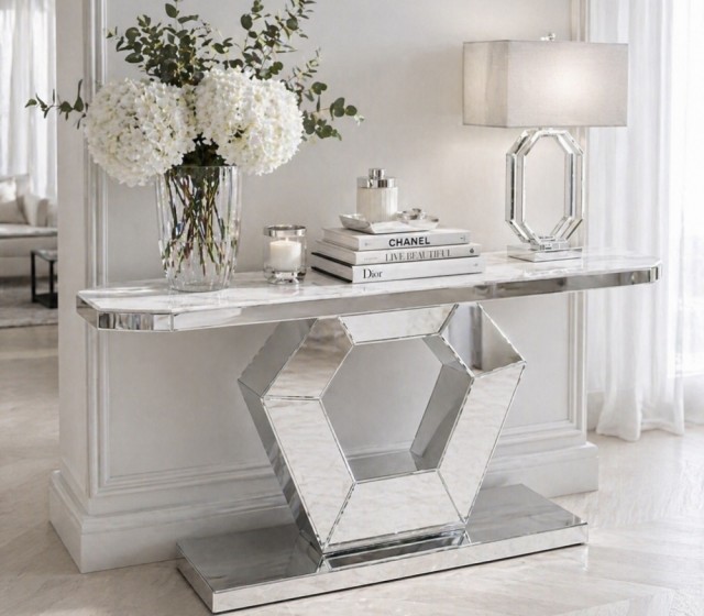 Moderne og elegant konsollbord som vil tilføre rommet ekslusiv eleganse. Bordet er laget av meget høy kvalitet. Rent, enkelt og i fantastisk materiale, mer er ikke nødvendig for å elske dette bordet.