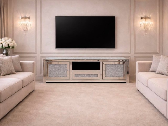 Kjempestilig tv-benk i tidsriktig og moderne design som har 2 romslige dører og 2 hyller som gir god oppbevaring. Hull til ledninger i bakplaten. Enesteånde og utrolig vakkert og passer perfekt i det fleste hjem.