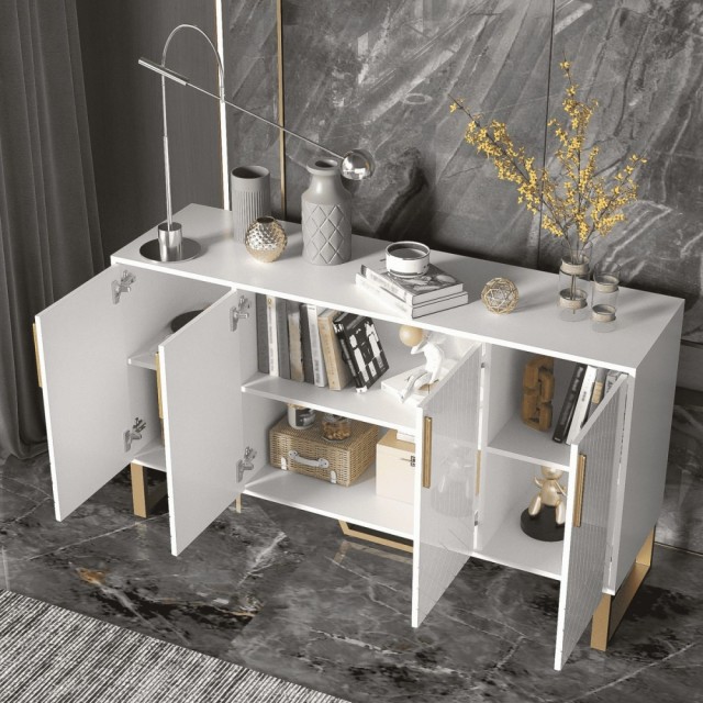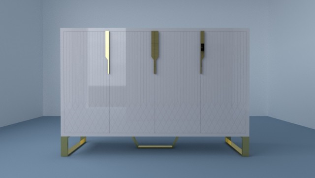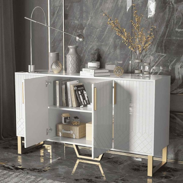 Miami er en klassisk og stilrent sjenk i hvit eik/MDF med gull rustfritt stål understell&håntak av meget god kvalitet.