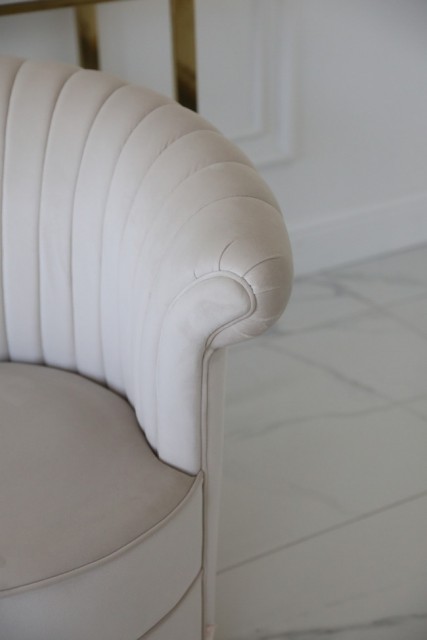 Oppdag elegansen i vår eksklusive loungestol – trukket i nydelig beige velour og med en glansfull base i rustfritt stål. Denne stolen kombinerer komfort og stil på en måte som løfter ethvert rom. Den dreibare funksjonen gir ekstra fleksibilitet, mens det skulpturelle ryggdesignet og det myke stoffet skaper en luksuriøs sitteopplevelse. Perfekt som blikkfang i stuen, soverommet eller sminkehjørnet. Et ekte statement-møbel. Leveres nøyaktig som avbildet – og den er enda finere i virkeligheten!