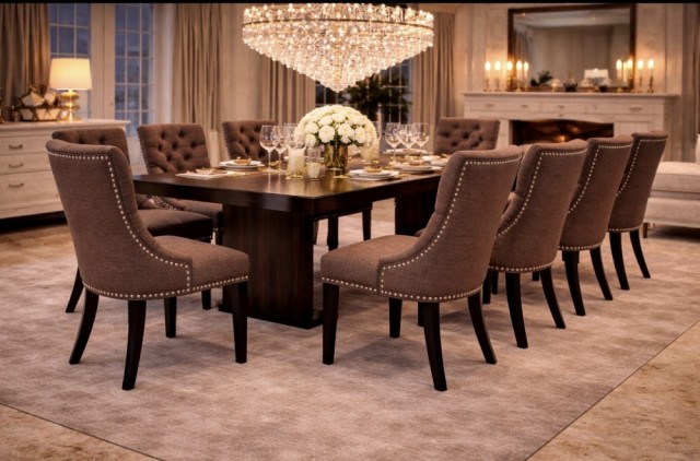 Oppgrader din spisestue med våre eksklusive spisestoler, laget av førsteklasses linen stoff og svart treverk. Disse stolene kombinerer eleganse og holdbarhet, noe som gjør dem til det perfekte tilskuddet til ethvert interiør, enten det er moderne eller klassisk. Med sitt tidløse design og ergonomiske komfort, er de ideelle for lange middager eller koselige sammenkomster. Bestill nå og opplev den perfekte balansen mellom stil og funksjonalitet!