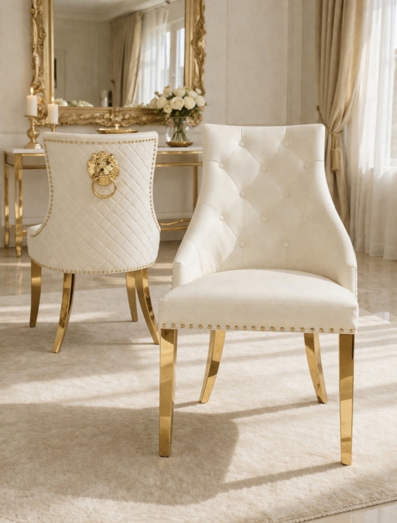 Mallorca stol - Lys beige skinn & Gull rustfritt stål
