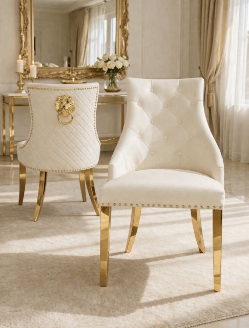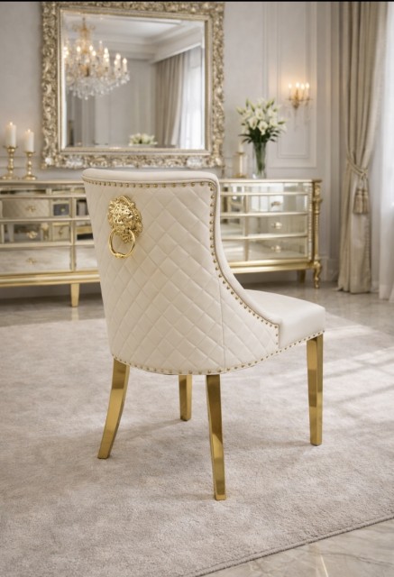 Oppgrader spisestuen med denne eksklusive stolen som kombinerer elegant design, produsert av meget høye materialer. Den er kledd i mykt syntetisk skinn i en sofistikert beige nyanse, som gir et luksuriøst preg til rommet. Understellet, laget av rustfritt stål i gullfinish, gir et moderne og stilfullt uttrykk som er både slitesterkt og vakkert. Denne stolen tilfører et sofistikert og innbydende utseende til enhver spisegruppe, og er et perfekt valg for deg som ønsker å skape en raffinert og hyggelig atmosfære i hjemmet ditt. Utrolig lett å rengjøre.