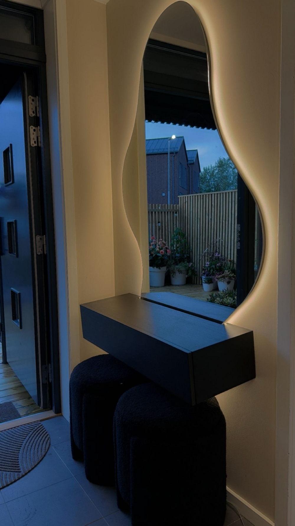 Velg mellom skuffer i brun, sort eller eik (beige).