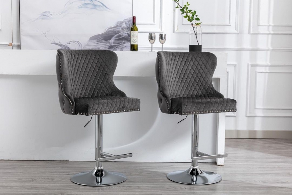 California barstol - Grå italiensk fløyel & Sølv rustfritt stål ben TilbudNOK5 942,00 Førpris:NOK6 990,00 -15% inkl. mva. Kjøp