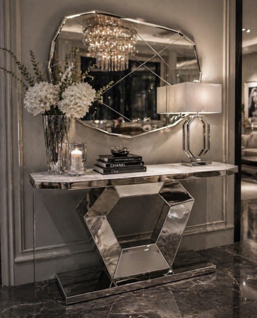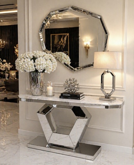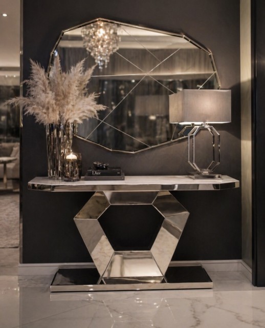 Moderne og elegant konsollbord som vil tilføre rommet ekslusiv eleganse. Bordet er laget av meget høy kvalitet. Rent, enkelt og i fantastisk materiale, mer er ikke nødvendig for å elske dette bordet.