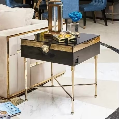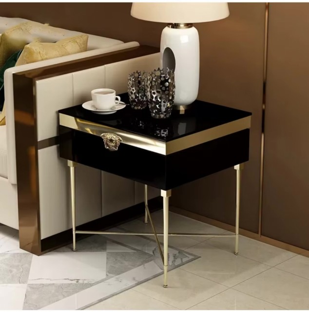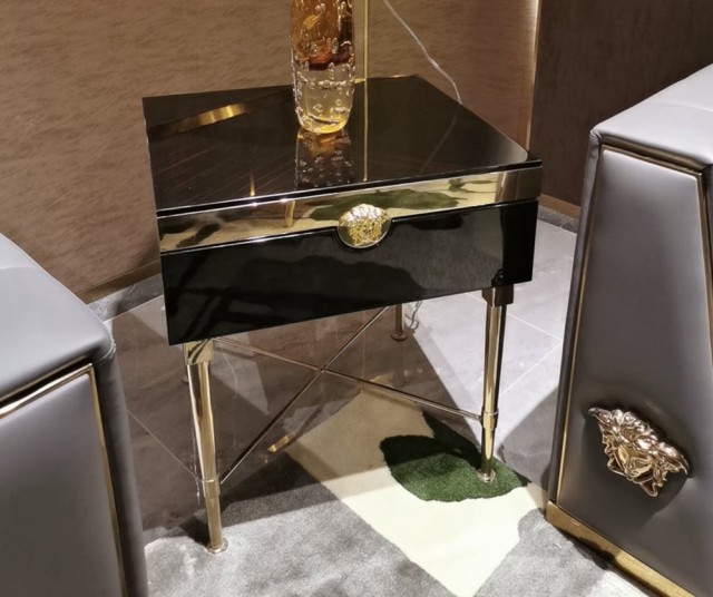Medusa sidebord kombinerer moderne design med smart funksjon. Bruk det som nattbord ved sengen, ekstra bord i stuen, eller til dekorative formål – alltid med et sofistikert uttrykk i sort og gull.