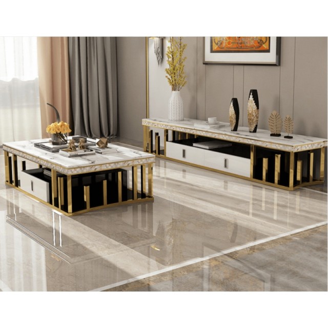 Arviso konsollbord - Hvit steinplate & Gull rustfrittstål understell