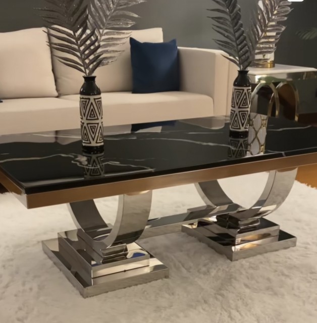 Moderne og elegant spisebord som vil tilføre rommet ekslusiv eleganse. Bordplaten er laget av en unik stein plate og understellet i rustfritt stål. Sammen gir dette et utrolig flott og tidsriktig design som passer godt inn i de aller fleste miljøer.