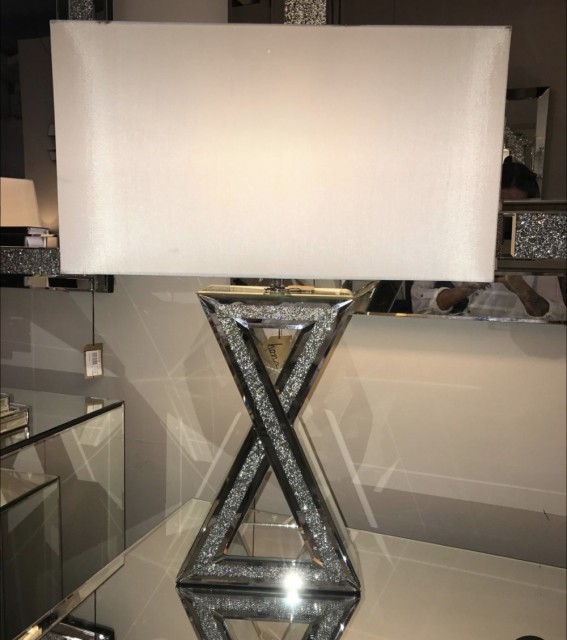 Noen ganger er en ny lampe alt som skal til for å skaper en hyggelig stemning. Denne elegante bordlampen er lagd av av speilglass som lyser opp rommet med en helt vanlig lyspære.