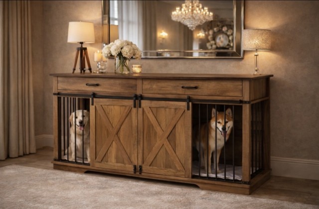 Oppdag det perfekte møbelet for både deg og din firbeinte venn! Dette elegante hundehuset fungerer også som en stilren skjenk – en smart 2-i-1-løsning som kombinerer design, funksjonalitet og komfort.