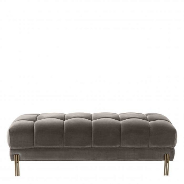 New York benk er en modern og stilig benk med en elegant og interessant form. Materialet i setet er produsert av italiensk velour stoff og bena er laget av rustfritt stål. Perfekt for kjøkkenet og for lange middager rundt spisebordet eller ved siden av sofaen din.