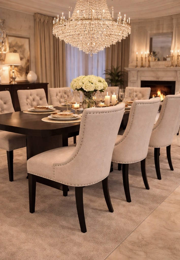 Oppgrader din spisestue med våre eksklusive spisestoler, laget av førsteklasses linen stoff og svart treverk. Disse stolene kombinerer eleganse og holdbarhet, noe som gjør dem til det perfekte tilskuddet til ethvert interiør, enten det er moderne eller klassisk. Med sitt tidløse design og ergonomiske komfort, er de ideelle for lange middager eller koselige sammenkomster. Bestill nå og opplev den perfekte balansen mellom stil og funksjonalitet!