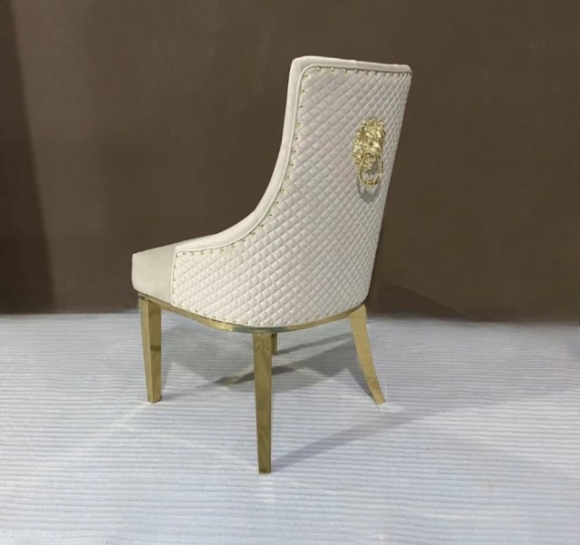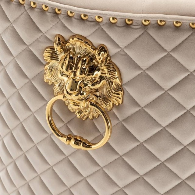 Mallorca stol – Beige velour & Gull rustfritt stål - Løvehode bak