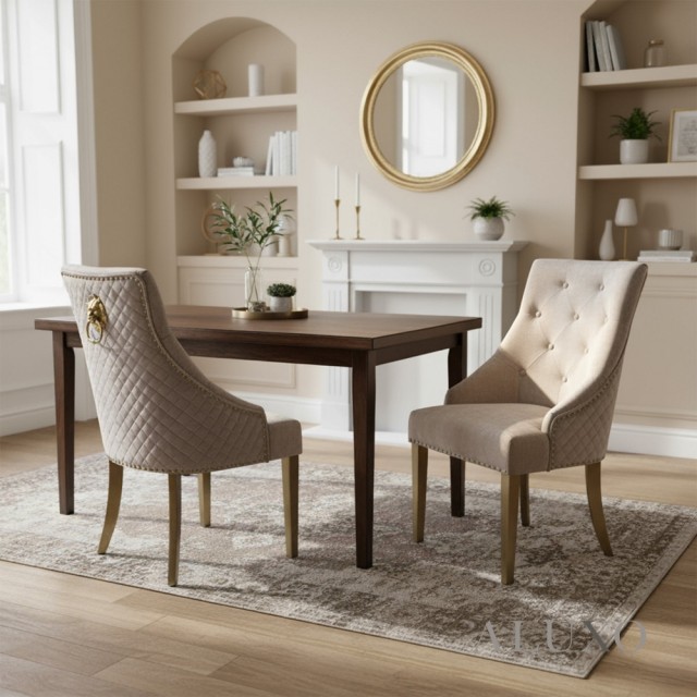 Oppgrader spisestuen med denne eksklusive stolen som kombinerer elegant design, produsert av meget høye materialer. Mallorca stol er en stilfull og eksklusiv stol trukket i myk beige velour med et vakkert quiltet mønster. Den solide konstruksjonen og høye kvaliteten gir god sittekomfort og lang levetid. Gullfargede detaljer i rustfritt stål tilfører et sofistikert uttrykk og løfter helhetsinntrykket. En tidløs og elegant stol som passer perfekt rundt spisebordet eller som en dekorativ stol i hjemmet. Utrolig lett å rengjøre.