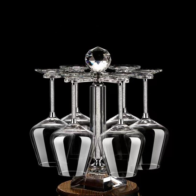 Stetten på glasset er fylt med nydelige krystaller med sølvkant ned mot foten og gir et eksklusivt preg hvor krystallene glitrer.
