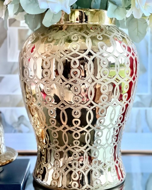 Tidløs, klassisk og unikt krukke i lekker design som kan brukes som både oppbevaringsbokser, vaser eller rett og slett som et herlig tilskudd til hjemmeinteriøret ditt. Alle våre krukker er håndlaget og er laget av porselen. Dette har resultert i vakre mønstre og farger som gir en herlig og frisk følelse. Floral urne finnes i 2 ulike størrelser; 50 og 33 cm som passer utmerket hvor som helst; På et konsollbord, middagsbord, vinduskarm, hyller eller stående på gulvet med en blomsterbukett i.